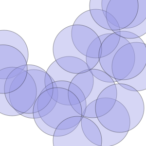 Here, our goal is to cover the maximum amount of territory using the smallest number of circles (analogous to capturing as much variance in participant responses as possible using the fewest number of items). By this light, the solution in the above figure is kind of crummy, because it fails to cover much of the space despite having 20 circles to work with. The obvious problem is that there’s a lot of redundancy between the circles—many of them overlap in space. A more sensible arrangement, assuming we insisted on keeping all 20 circles, would look like this:
